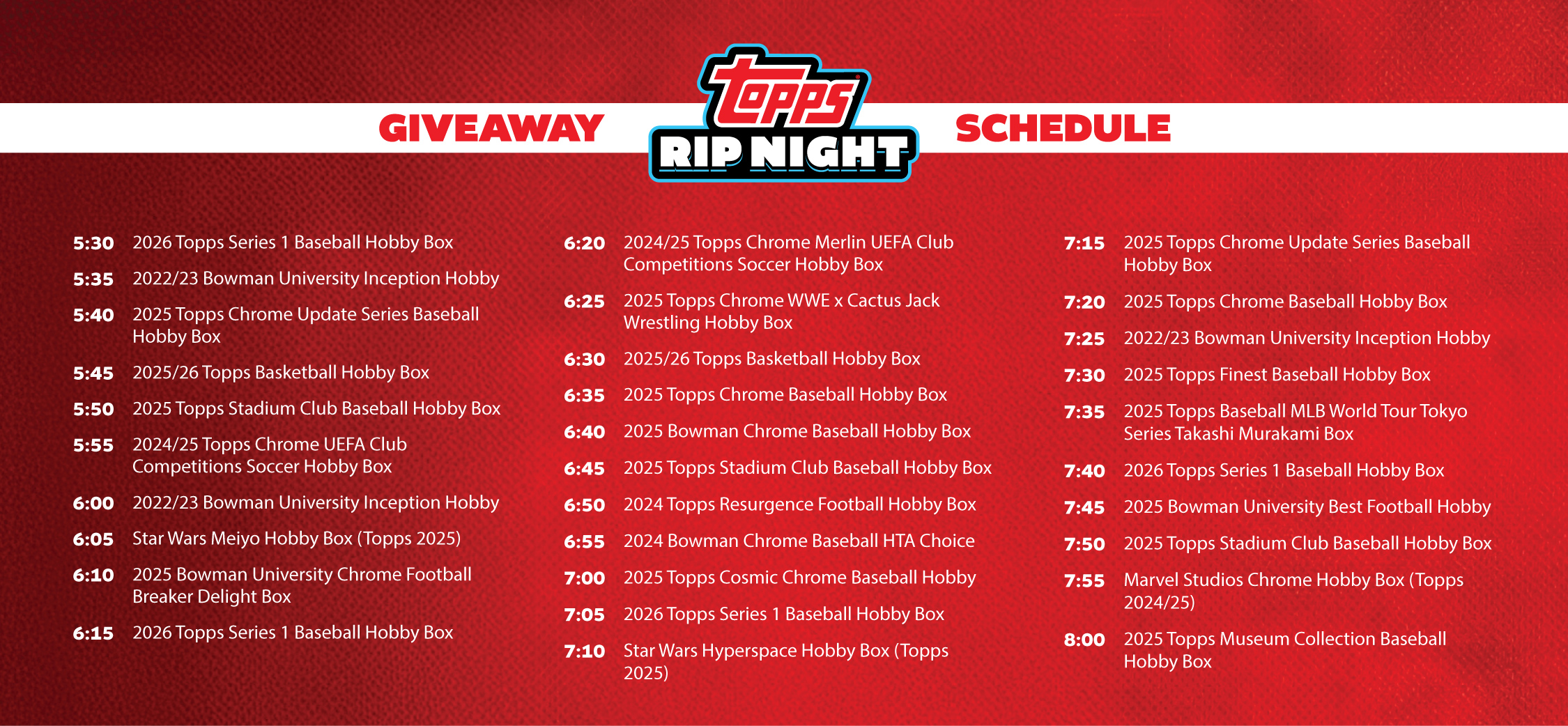 Topps Rip Night is Back! If you attended Topps Rip Night last February, you know this is an event you don’t want to miss!
